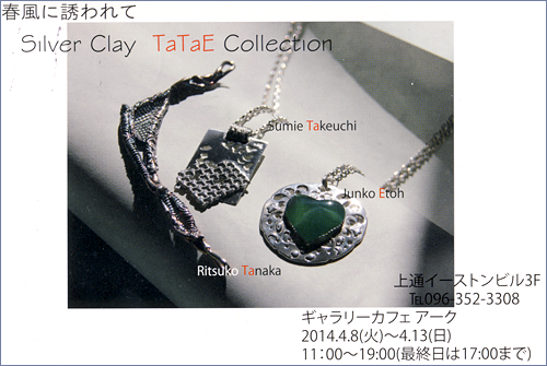 2014年4月8日(火)〜4月13日(日)に、田中律子先生・竹内純江先生・江藤淳子先生の三人展 「春風に誘われて Silver Clay TaTaE Collection」 が開催されます。