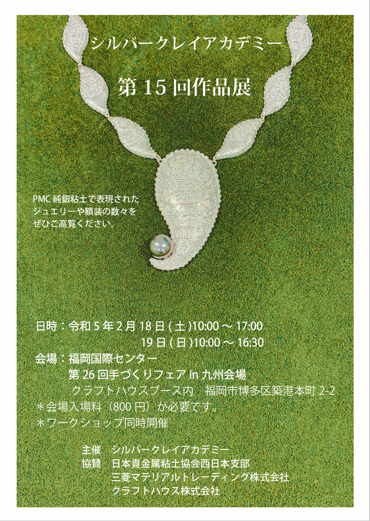 今回は額装やジュエリーなど、PMC純銀粘土による様々な作品を楽しんでいただけます。